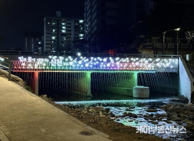 이번 공사를 통해 기존에 삼미시장까지 공급되던 유지용수 관로를 신천 상류까지 약 1km 연장해 원수를 공급했으며 ▲낙차 분수 조성 ▲야간 경관조명 설치 ▲목교 및 경관 덱 설치 ▲산책로 정비를 추진했다. 특히 복개주차장 상단에 설치된 조명시설은 야간 분수 가동시간에 맞춰 아름다운 풍경을 연출하며 시민들에게 색다른 즐거움을 선사할 예정이다.