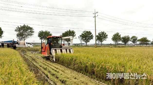 케이부동산뉴스 김교민 기자 | 논산시가 풍요로운 수확의 계절을 맞아 지역 농업인이 함께하는 벼베기 현장을 찾았다.