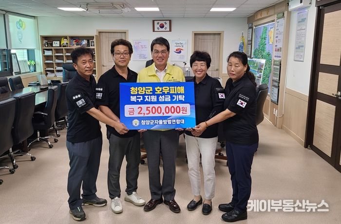 케이부동산뉴스 김교민 기자 | 청양군자율방범연합대가 지난 18일 청양군청을 방문해 집중호우 피해 주민들을 위한 복구 지원 성금 250만 원을 맡겼다.
