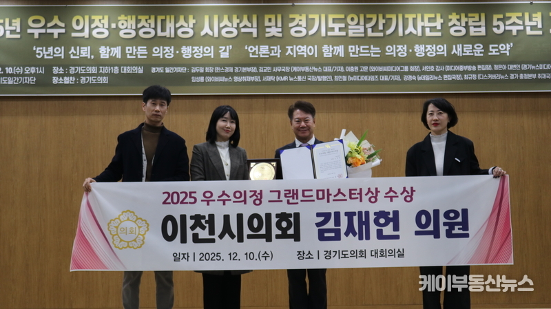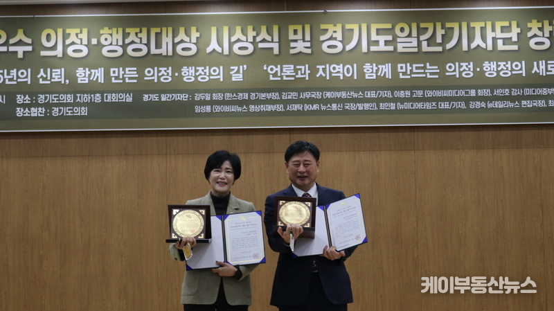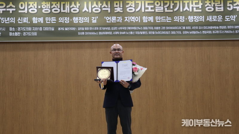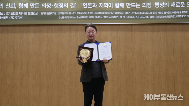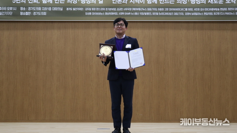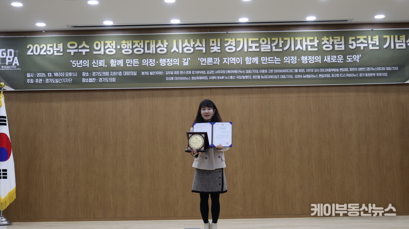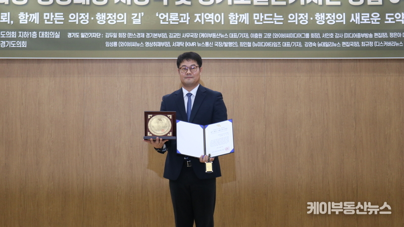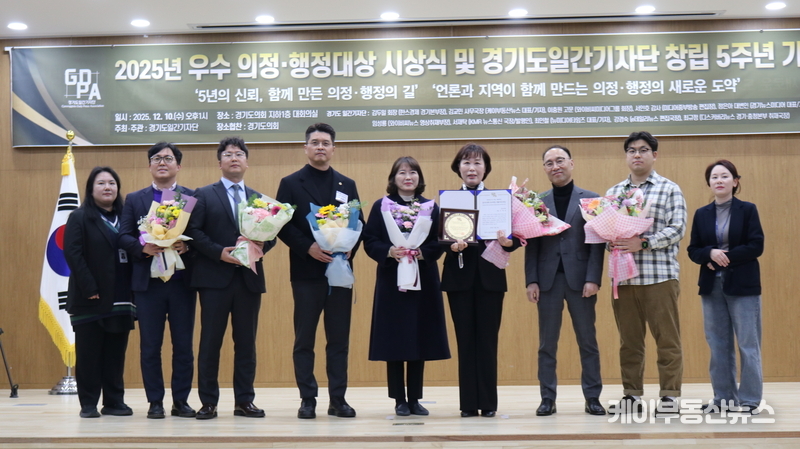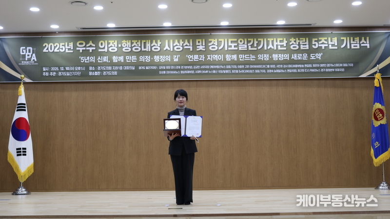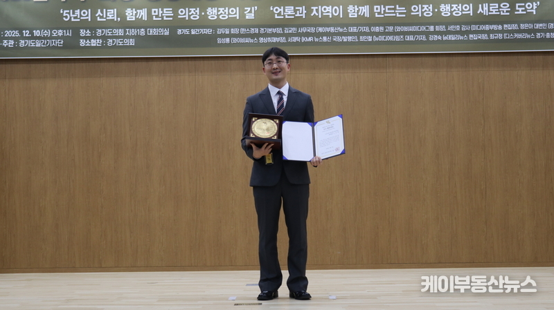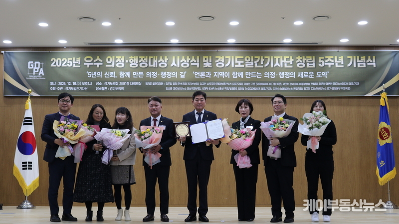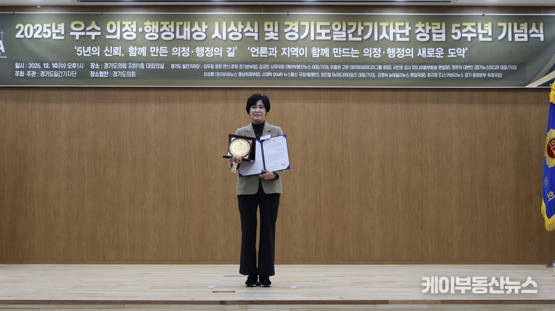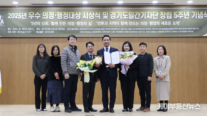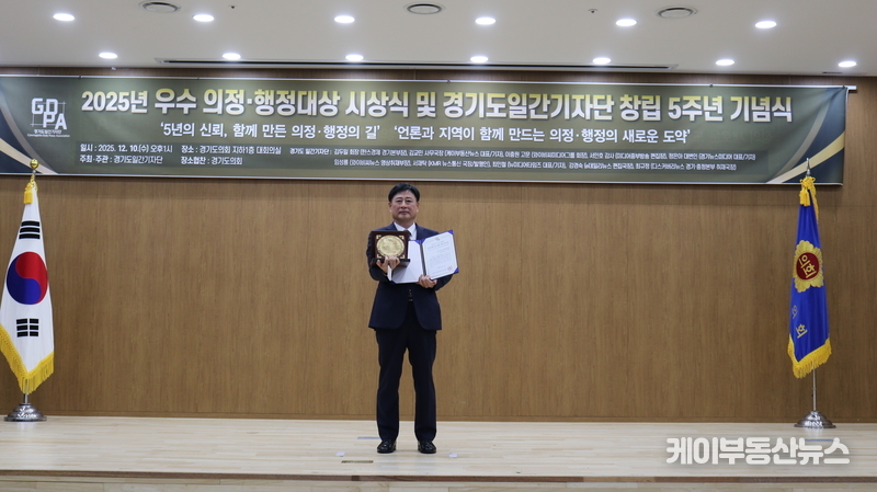 케이부동산뉴스 김교민 기자 | 경기도일간기자단(회장 김두일)이 주관한 ‘2025 우수 의정·행정대상’ 시상식이 12월 10일 경기도의회 대회의실에서 성대하게 개최됐다.