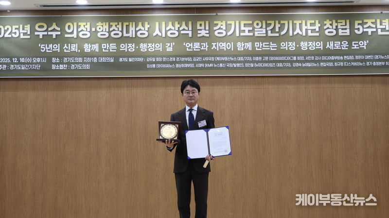 한편, ‘2025 우수 의정·행정대상 시상식’은 지난 12월 10일 경기도의회 대회의실에서 개최됐으며, 올해 처음으로 외부 전문가 심사위원단 제도를 도입해 수상자 선정의 공정성과 전문성을 한층 강화했다는 평가를 받고 있다.