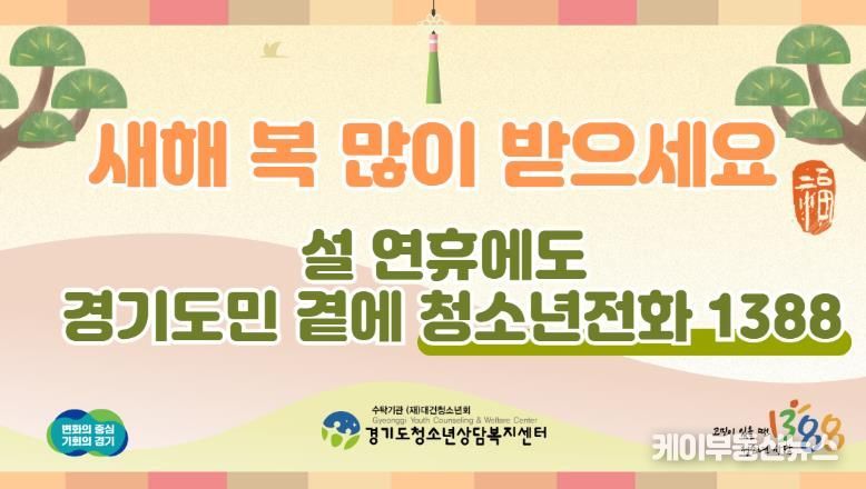 케이부동산뉴스 김교민 기자 | 경기도는 설 당일을 포함해 14~18일 연휴 기간에도 위기 청소년 심리 상담 서비스 ‘청소년전화1388’을 24시간 운영한다.