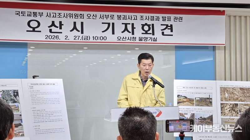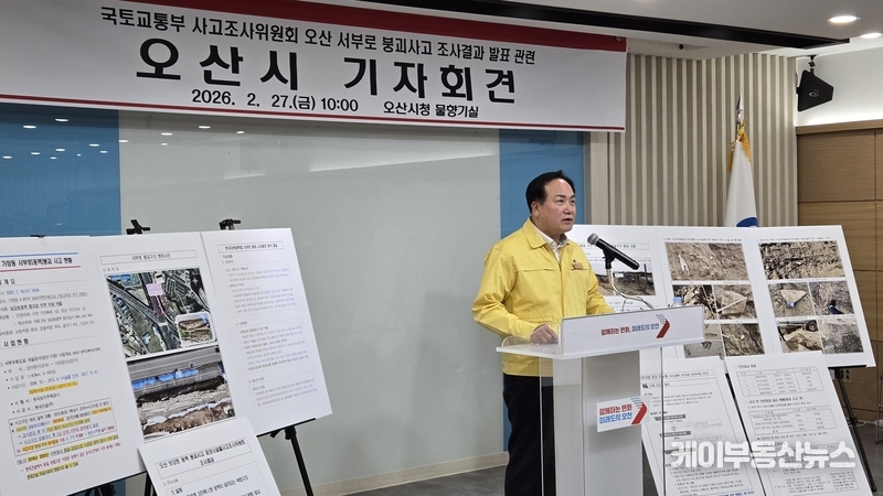 오산시(시장 이권재)는 27일 오전 10시 오산시청 물향기실에서 기자회견을 열고 사고로 소중한 생명을 잃은 고인과 유가족에게 깊은 애도를 표했다. 이권재 시장은 “사고 책임과 관련한 사항은 현재 수사 및 행정 절차가 진행 중인 만큼 성실히 협조하며 객관적 판단을 기다리겠다”며 “재발 방지를 위한 제도 개선에 집중하겠다”고 밝혔다.