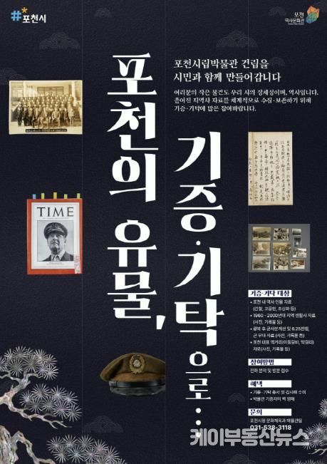 케이부동산뉴스 김교민 기자 | 포천시는 시민과 함께 만들어가는 포천시립박물관 건립을 위해 포천의 정체성과 역사를 보여주는 유물과 자료의 기증·기탁 운동을 전개한다.