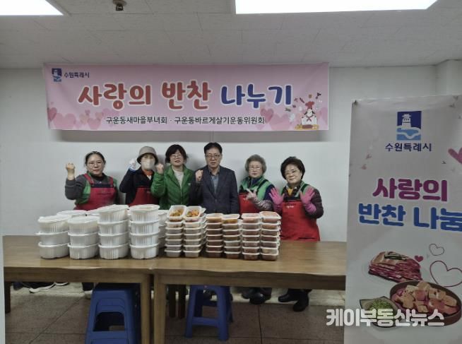 케이부동산뉴스 김교민 기자 | 수원시 권선구 구운동 새마을 부녀회는 지난 11일 관내 어려운 이웃을 대상으로 반찬을 만들어 후원하는 ‘사랑의 반찬 나누기’ 봉사활동을 진행했다.