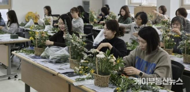 모집 정원은 20명이었으나 주민들의 높은 관심으로 23명이 신청해 초과 모집 형태로 진행됐으며, 참여 주민들은 다양한 꽃을 활용한 꽃바구니 만들기를 체험하며 즐거운 시간을 보냈다.