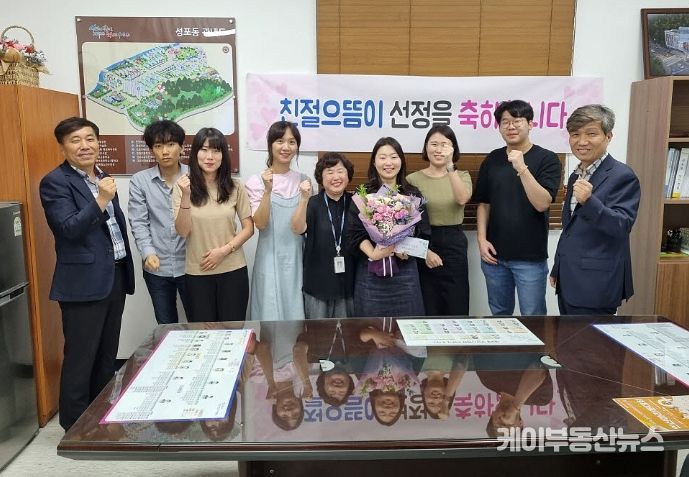 이번에 선발된 친절으뜸이는 항상 따뜻하고 친절하게 민원인을 맞이한 성포동 한송희(행정 9급) 주무관이다.