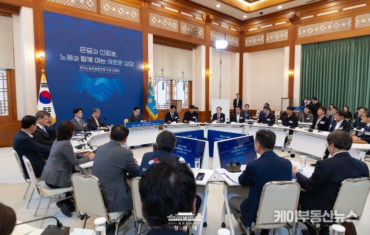 이 대통령은 지난주 경제사회노동위원회 1기가 출범한 사실을 언급하며 "노사정이 사회적 대화로 오랜 기간 누적된 문제를 해결하는 방법을 모색하고 미래 지향적인 논의가 되길 바란다"고 당부했다.