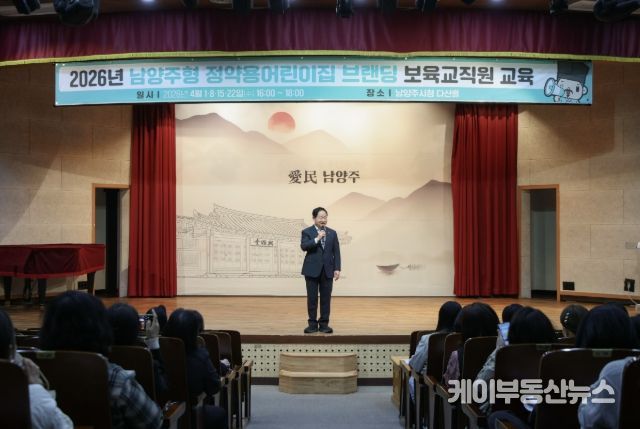 케이부동산뉴스 김교민 기자 | 남양주시는 지난 1일 시청 다산홀에서 ‘남양주형 정약용어린이집’의 브랜드 가치 제고와 보육교직원의 역량 강화를 위해 ‘2026년 정약용어린이집 브랜딩 보육교직원 교육’을 개최했다고 2일 밝혔다.