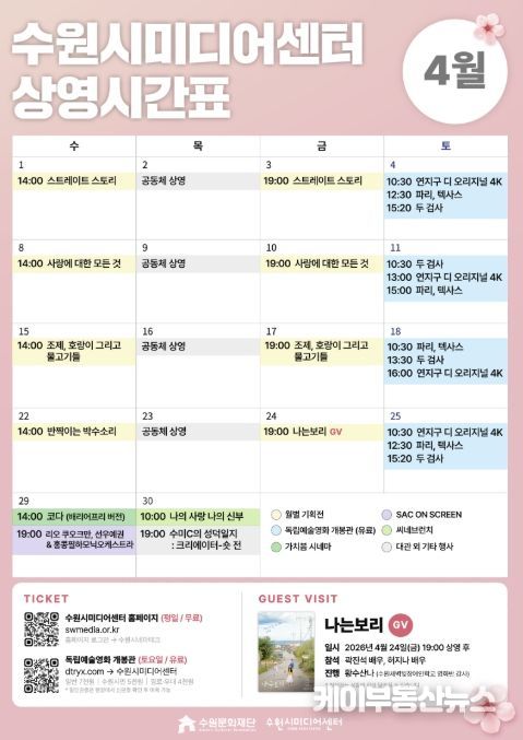 수원시미디어센터 관계자는 “이번 업무협약을 통해 누구나 차별 없이 문화를 접하고 누릴 수 있는 환경을 조성하고자 한다”며, “4월 장애인의 날을 맞아 운영하는 기념 프로그램을 시작으로, 배리어프리 영화 상영을 지속 확대해 나가겠다”고 밝혔다.