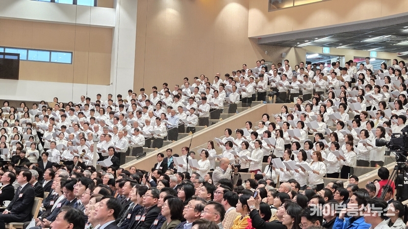 특히 1200여 명 규모의 연합찬양대가 무대에 올라 부활 찬양을 이어가자 예배당은 장엄한 합창으로 가득 찼고, 참석자들은 일제히 자리에서 일어나 찬양에 동참하며 부활의 기쁨을 나눴다.