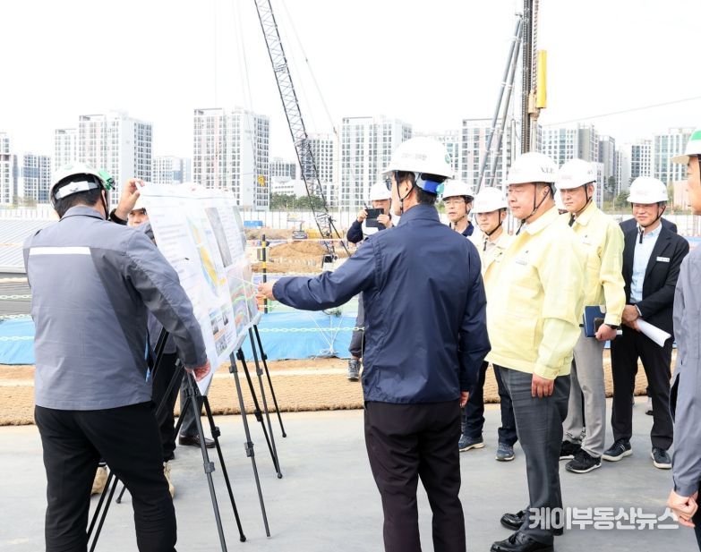 이번 점검은 공사 진행 현황과 주요 공정 추진 사항, 여름철 집중호우 등 재해 발생에 대비해 위험 요인을 사전에 확인하기 위해 추진됐다. 이날 현장에는 파주시장 및 관계 공무원들이 참석해 시공사로부터 부지 조성 및 공동주택 공사 진행 상황을 보고받고, 주요 공정 현장을 직접 확인했다.