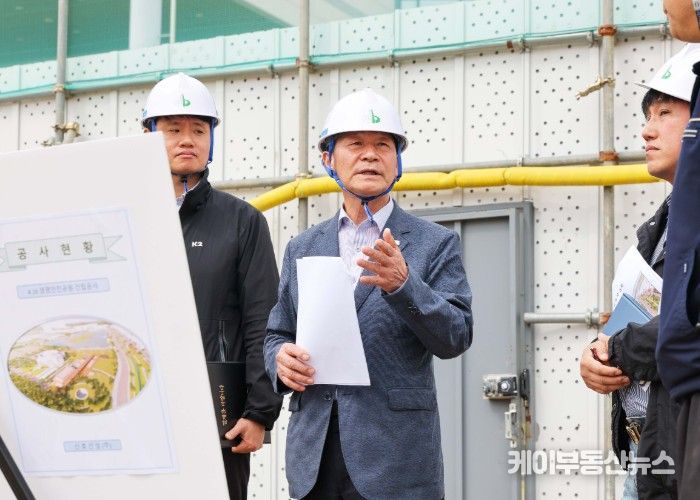 케이부동산뉴스 김교민 기자 | 안산시의회 박태순 의장이 20일 단원구 초지동 4·16생명안전공원 건립공사 현장을 방문해 공사 진행 상황을 점검하고 안전 시공과 원활한 자재 수급을 당부했다.