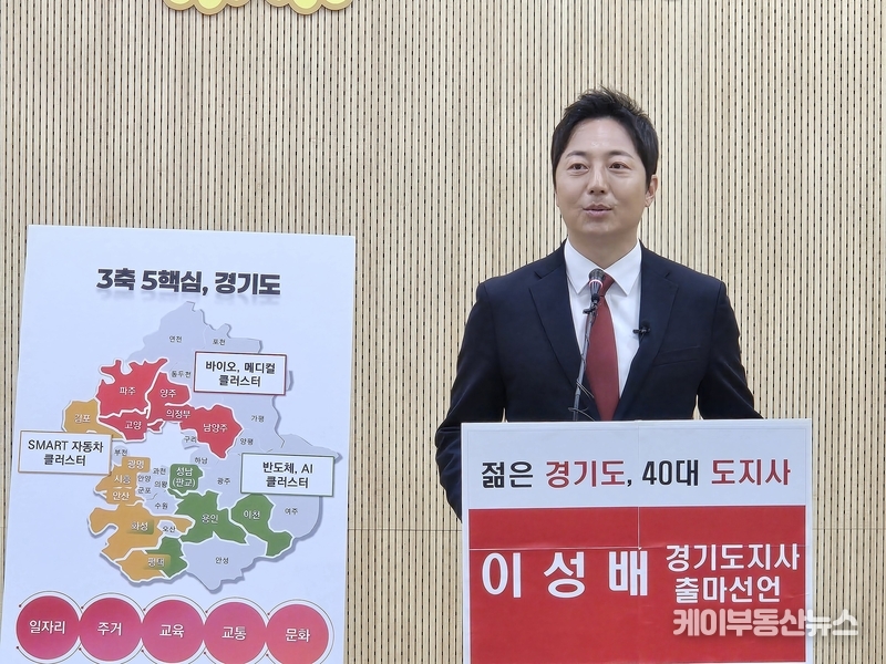 케이부동산뉴스 김교민 기자 | 국민의힘 경기도지사 경선 후보인 이성배 전 MBC 아나운서가 “정치가 아니라 도민의 삶의 현장에서 답을 찾겠다”며 출마를 공식 선언했다.