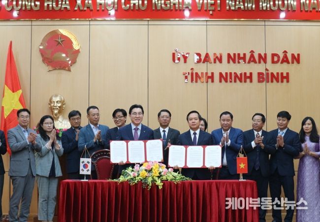 케이부동산뉴스 김교민 기자 | 박경귀 아산시장과 팜쾅응옥 베트남 닌빈성장이 13일(한국 시각) 양 도시 간 농업 분야 교류 확대를 위한 합의서에 서명했다.