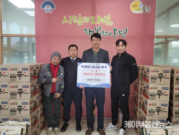 케이부동산뉴스 김교민 기자 | 경기 양평 용문면 청년회는 13일 용문면사무소를 방문해 지역 내 어려운 이웃들에게 전달해달라며 라면 50박스와 백미 100kg을 기탁했다.