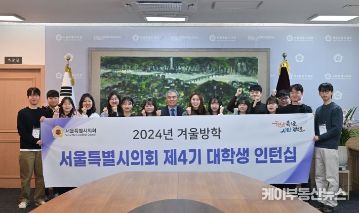 케이부동산뉴스 김교민 기자 | 서울특별시의회 김현기 의장은 22일 의회 본관 의장접견실에서 서울시의회 제4기 대학생 인턴 15명과 간담회를 갖고, 청년들의 목소리를 청취했다.