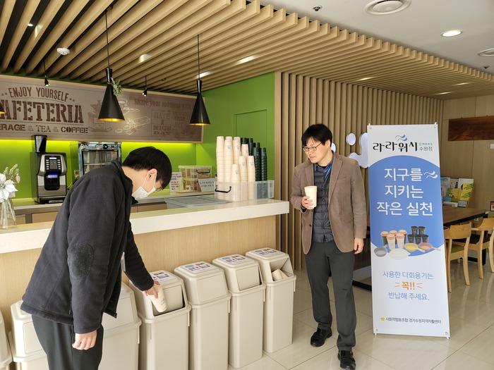 ‘다회용기 사용체계’는 일회용품 대신 지역자활센터에서 제공한 다회용 컵을 사용한 후 회수·세척하여 재공급하는 체계적인 순환시스템을 말한다.