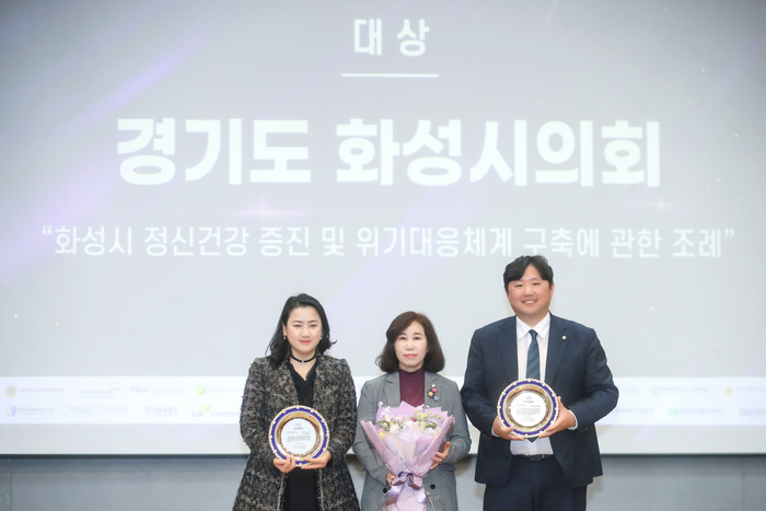 단체부문 대상은 전성균 의원이 대표 발의한 ‘화성시 정신건강 증진 및 위기대응 체계 구축에 관한 조례’로 화성시에 정신 응급입원이 가능한 공공병상 확보와 정신질환에 대한 인식개선 사업 등을 규정하고 있어, 화성시민의 정신건강 증진과 지역사회 통합에 새로운 영향을 줄 것으로 기대하고 있다.