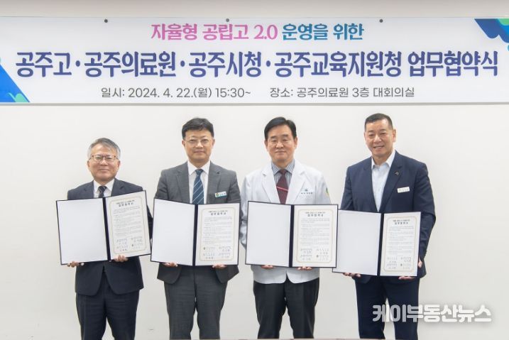 케이부동산뉴스 김교민 기자 | 공주시는 공주고등학교와 공주의료원, 공주교육지원청과 지역의 메디컬 분야 전문인재 육성을 위한 업무협약을 체결했다.