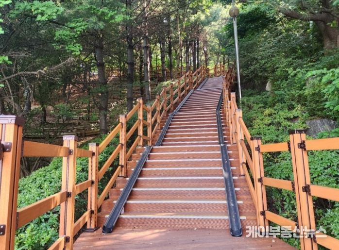 구는 이번에 특별조정교부금 4억원을 투입해 파손된 노후 계단을 목재 데크 계단으로 전면 교체하고 배수시설까지 정비했다. 대덕초 통학로로 이용하는 등산로 구간에는 조명등도 함께 설치했다.