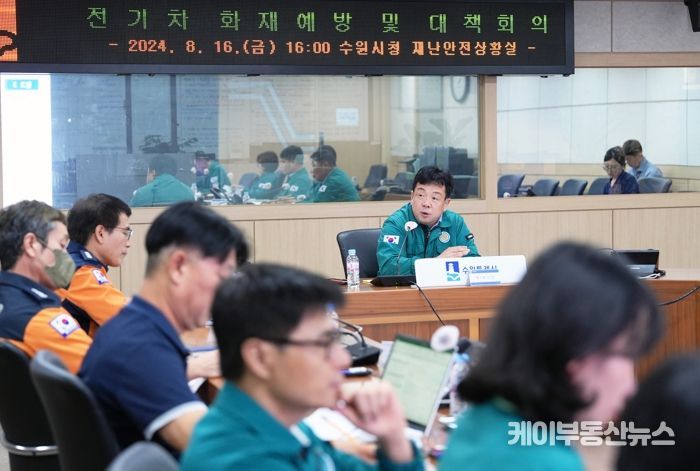 케이부동산뉴스 김교민 기자 | 수원시는 16일 재난안전상황실에서 ‘전기차 화재 예방·대책 회의’를 열고, 전기차 화재 예방·대응 방안을 논의했다.