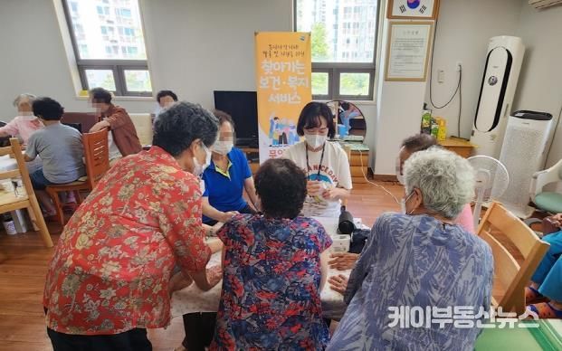케이부동산뉴스 김교민 기자 | 의정부시 송산1동주민센터는 8월 19일 용현동 소재 송산주공1단지 경로당을 방문해 ‘제3차 찾아가는 건강서비스’를 실시했다.