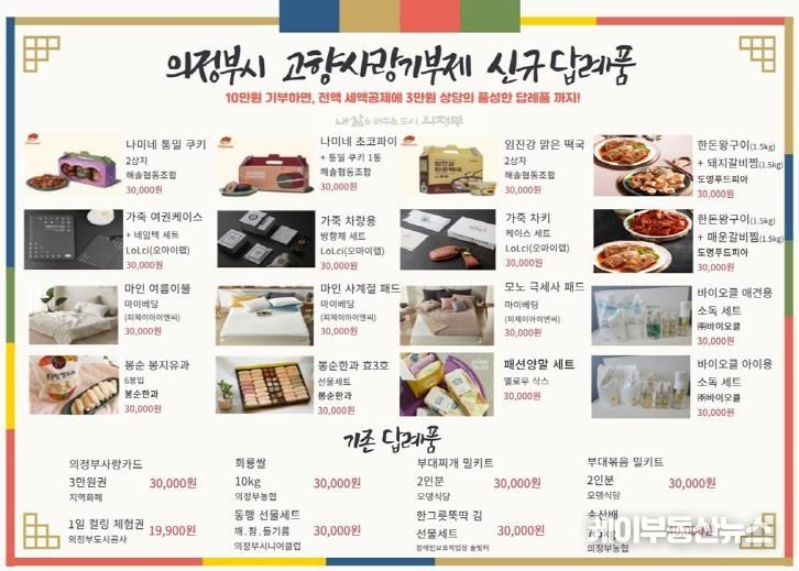 케이부동산뉴스 김교민 기자 | 의정부시는 고향사랑기부제 참여 유도를 위한 답례품 16종을 추가 선정했다고 23일 밝혔다.