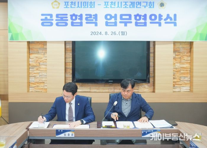 케이부동산뉴스 김교민 기자 | 포천시의회는 26일 의원회의실에서 포천시조례연구회와 함께 시민 생활의 질적 향상과 올바른 조례 정착을 위한 협약식을 진행했다.