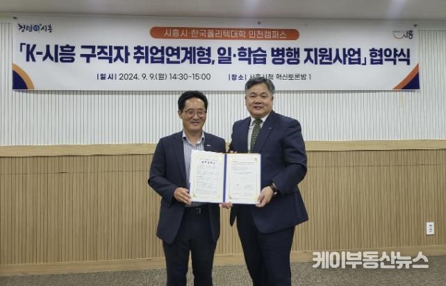 케이부동산뉴스 김교민 기자 | 시흥시는 한국폴리텍대학 인천캠퍼스와 지난 9일 ‘K-시흥 구직자 취업 연계형, 일ㆍ학습병행 지원사업’에 대한 업무 협약을 체결했다.