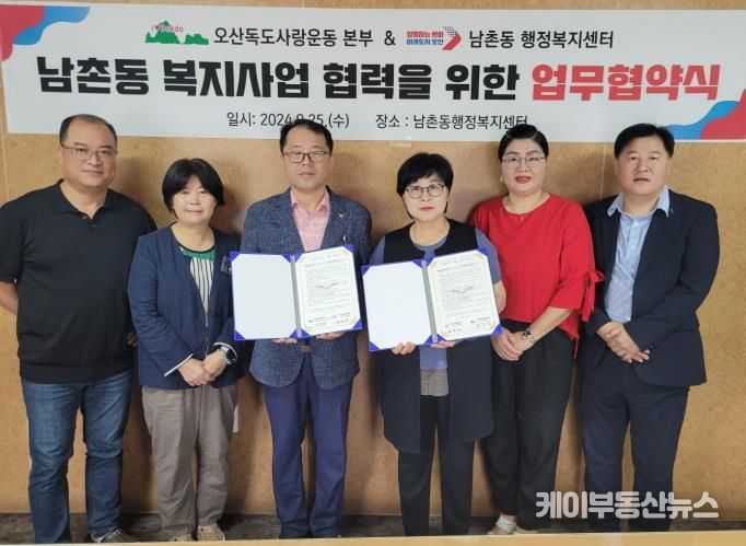 케이부동산뉴스 김교민 기자 | 오산시 남촌동은 25일 오산독도사랑운동본부와 남촌동 차상위계층 청소년 어린이보험(질병·상해) 보험료 지원을 위한 업무협약을 체결했다.