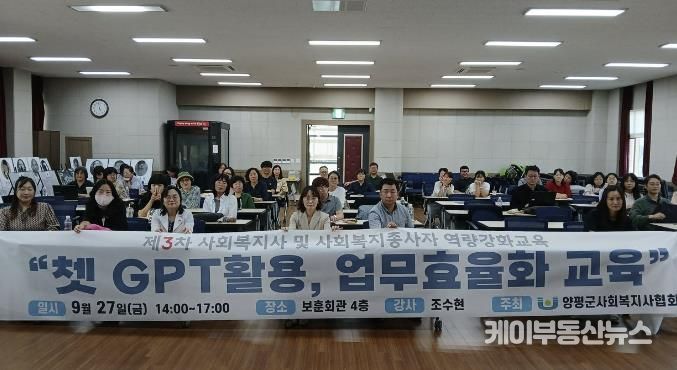 케이부동산뉴스 김교민 기자 | 양평군사회복지사협회는 지난 27일 양평군 보훈회관에서 사회복지사와 사회복지종사자를 대상으로 인공 지능(AI) 활용 교육을 추진했다.