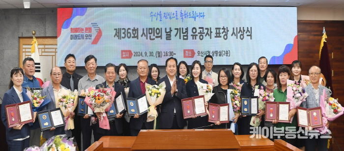 케이부동산뉴스 김교민 기자 | 오산시는 최근 2024년 제36회 시민의 날 기념 유공자 표창 시상식을 오산시청 상황실에서 개최했다.