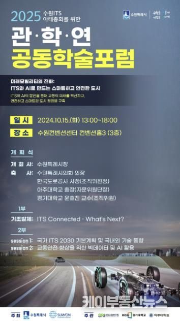 케이부동산뉴스 김교민 기자 | 2025 수원 ITS 아태총회를 위한 관·학·연 공동 학술포럼이 10월 15일 수원컨벤션센터 컨벤션홀3에서 열린다.