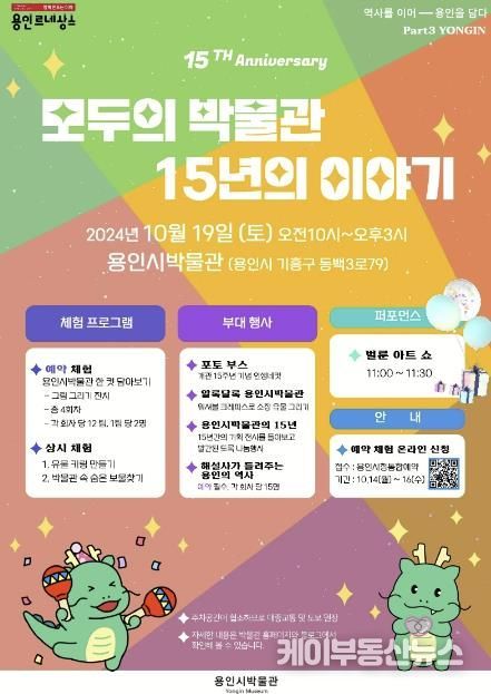 케이부동산뉴스 김교민 기자 | 용인시박물관은 개관 15주년을 맞이해 문화 체험 행사인 ‘모두의 박물관, 15년의 이야기’를 연다고 16일 밝혔다.