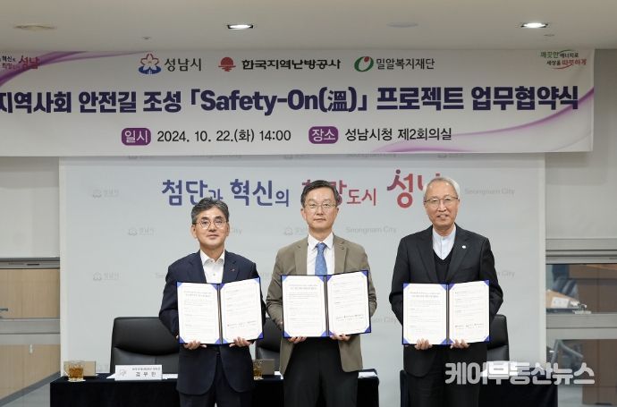 케이부동산뉴스 김교민 기자 | 성남시가 지역사회 안전길 조성 사업의 일환으로 한국지역난방공사와 밀알복지재단과 함께 수정구 시민로205번길(성남시의료원 뒤)에 도로 열선을 설치·운영한다.