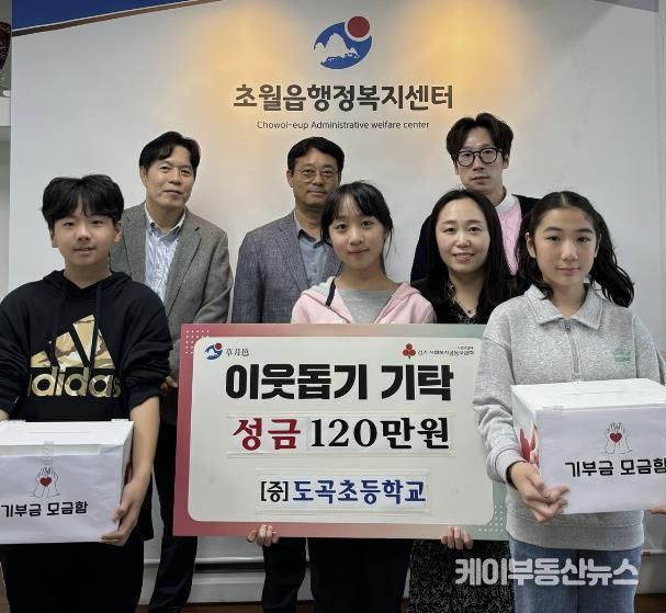 케이부동산뉴스 김교민 기자 | 광주시 초월읍 도곡초등학교는 지난 25일 초월읍 행정복지센터를 방문, 성금 120만 원을 기탁했다.