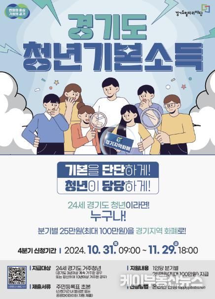 케이부동산뉴스 김교민 기자 | 용인특례시는 11월 29일까지 ‘2024년 4분기 청년기본소득’ 지급 신청을 받는다.