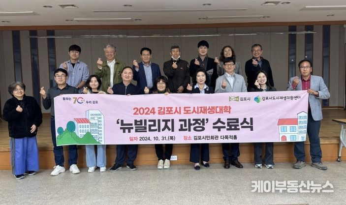 케이부동산뉴스 김교민 기자 | 김포시가 지난 10월 31일 김포 사우동에 위치한 김포시민회관에서 ‘도시재생대학 뉴:빌리지’ 수료식을 개최했다.