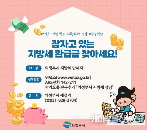 케이부동산뉴스 김교민 기자 | 의정부시는 납세자가 찾아가지 않은 지방세 환급금을 돌려주기 위해 11월 말일까지 ‘지방세 미환급금 일제정리 집중기간’을 운영한다.