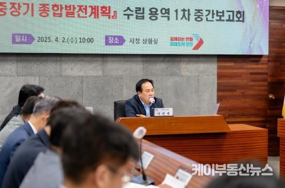 오산시는 2일 시청 상황실에서 ‘2040 오산시 중장기 종합발전계획 수립 용역’ 1차 중간보고회를 열고, 도시 전반을 아우르는 미래 전략과 비전을 공유했다. 이 자리에는 이권재 오산시장을 비롯해 부시장, 국·소장, 관계 공무원 등 50여 명이 참석했다.