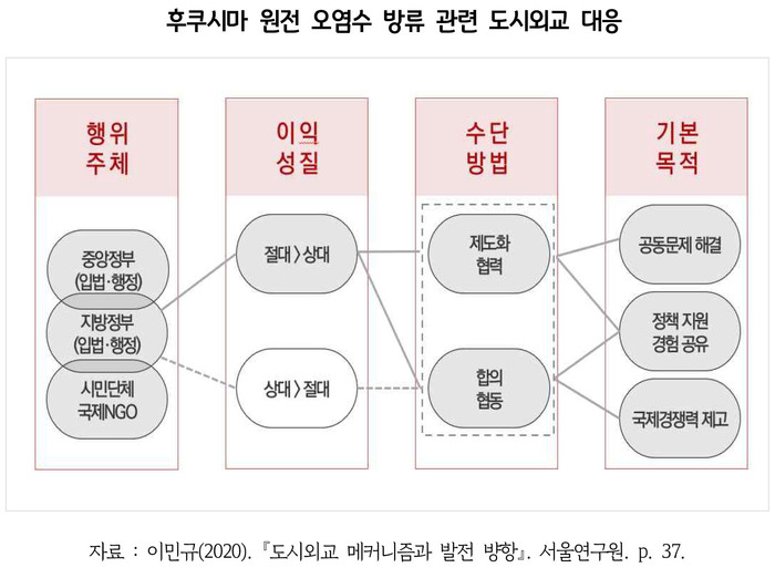 이에 연구원은 중앙정부와 정책 공조를 펼치는 한편, 원자력 안전의 중요성을 환기하면서 구체적인 제재 방안을 담을 수 있는 ‘원자력 안전 레짐’을 한·중·일 지자체 중심으로 구성하자고 제안했다. 레짐은 특정한 쟁점 영역과 관련해 레짐 속에 속한 국가들의 행위를 규제하는 협의체로, 대표적인 예로 호혜 평등 및 무역의 자유화를 근본 규범으로 삼고 회원국들의 무역 정책을 규제하고 있는 ‘관세 및 무역에 관한 일반 협정(GATT)’이 있다.