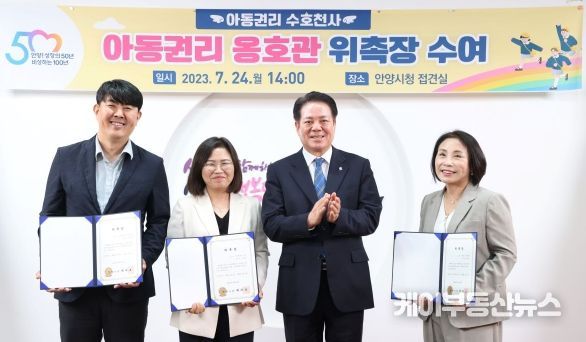 시는 24일 오후 2시 시청 접견실에서 염옥남 변호사(법무법인 우진), 오연주 안양시 가족센터장, 정욱재 굿네이버스 안양지부장 등 3명을 아동권리옹호관으로 위촉했다.