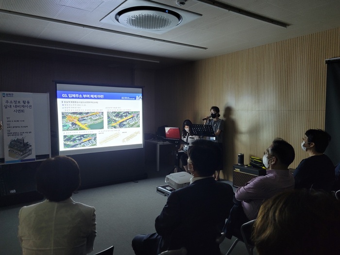 이에 구는 지난 해 ‘입체주소 전국 확산 및 활용방안’ 행정안전부 공모를 통해 전국 최초로 잠실역 일대(잠실역2,8호선, 광역환승센터, 잠실역 지하상가, 잠실역 공영주차장) 지하공간 전체에 입체주소를 부여하고, 주소정보시설을 설치하였으며, 실내 내비게이션 활용 개발 및 실증연구를 완료하였다.