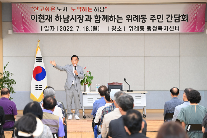 이날 상견례를 겸한 간담회에서는 민선8기 하남시의 시정운영 방향과 핵심가치를 설명하고, 주민과의 대화를 통해 청취한 건의사항에 대해 이 시장이 직접 답변하는 방식으로 진행됐다.