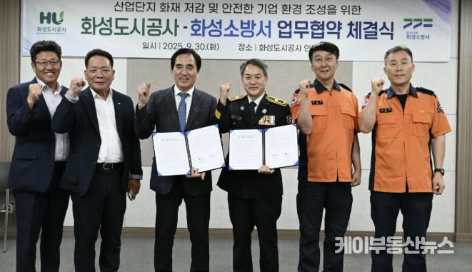 케이부동산뉴스 김교민 기자 | 화성도시공사는 지난 9월 30일 화성소방서와 산업단지 입주기업의 화재 피해 최소화 및 안전한 기업환경 조성을 위한 업무협약(MOU)을 체결했다고 밝혔다.