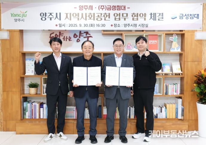 케이부동산뉴스 김교민 기자 | 양주시가 지난 30일 시청 시장실에서 ㈜금성침대와 지역사회공헌 업무 협약을 체결했다.