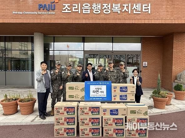 케이부동산뉴스 김교민 기자 | 파주시 조리읍은 지난 29일, 제2기갑여단 본부근무대가 추석을 맞아 지역 내 어려운 이웃을 돕기 위해 컵라면 등 즉석식품 16상자를 기탁했다고 밝혔다.