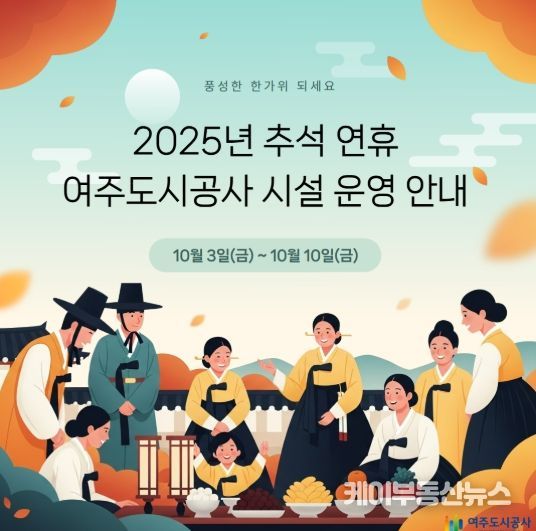 케이부동산뉴스 김교민 기자 | 여주도시공사는 2025년 추석 명절을 맞아 고향을 찾는 귀성객과 시민들의 편의를 위해 주요 시설 운영시간 조정, 무료개방 등 특별 서비스를 제공한다고 2일 밝혔다.