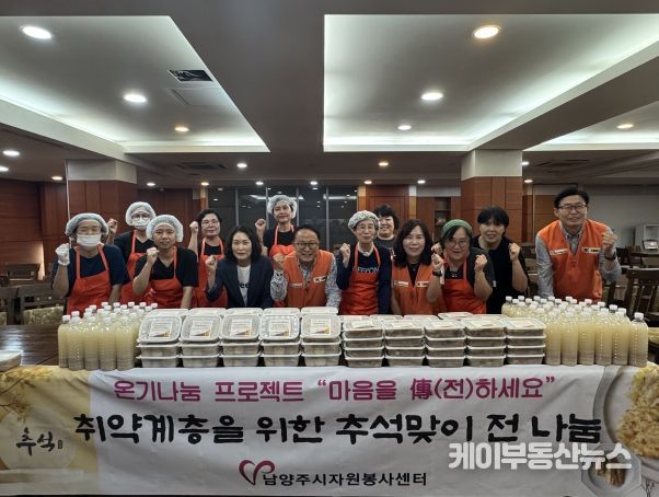 케이부동산뉴스 김교민 기자 | 남양주시자원봉사센터는 추석맞이 집중 주간을 맞이하여 9월 25일부터 오는 10월 3일까지 약 1,300명의 관내 취약계층을 대상으로 ‘추석맞이 전 나눔 활동’을 펼쳤다.